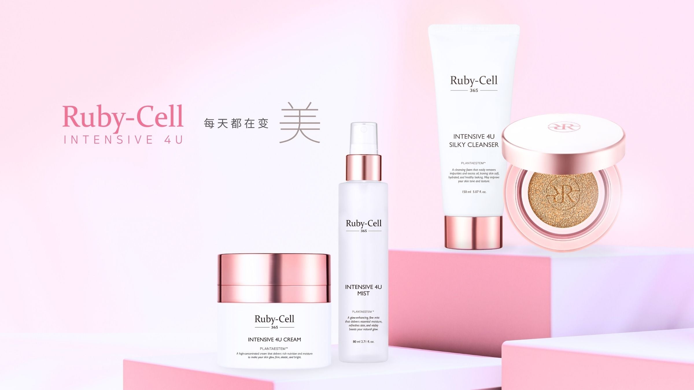 Ruby-Cell INTENSIVE 4U 不仅仅是护肤品,它是一种兼具肌肤保护和活化效用的全方位专研技术。该系列产品采用植物干细胞,其核心成分经过精心设计,可深入至细胞层面进行深层修复,促进肌肤更新。这些植物干细胞与活性催化成分相结合,形成最新的 Plantaestem™ 365 技术,提供全面的保湿、亮白及抗衰老功效。
